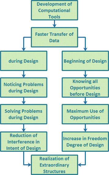 Interfacing programs have increased the interaction between design and optimization processes. However, the long time required by optimization decouples it from the design process. Interfacing programs link different software tools with one another. As a result, the analysis data can be loaded from one software tool into another to optimize the original design through a cyclic algorithm. For example, the interfacing programs that provide a direct link between geometric modeling software and structural analysis software (Elbeltagi et al., 2005 ) can transform structural analysis into a part of an interleaved design process, unless a long time is required for modeling or analysis. In other words, the long time spent on any optimization phase deprives the designer of obtaining direct feedback to their decisions during design. Thus, geometrical forms must be quickly modeled and analyzed.
