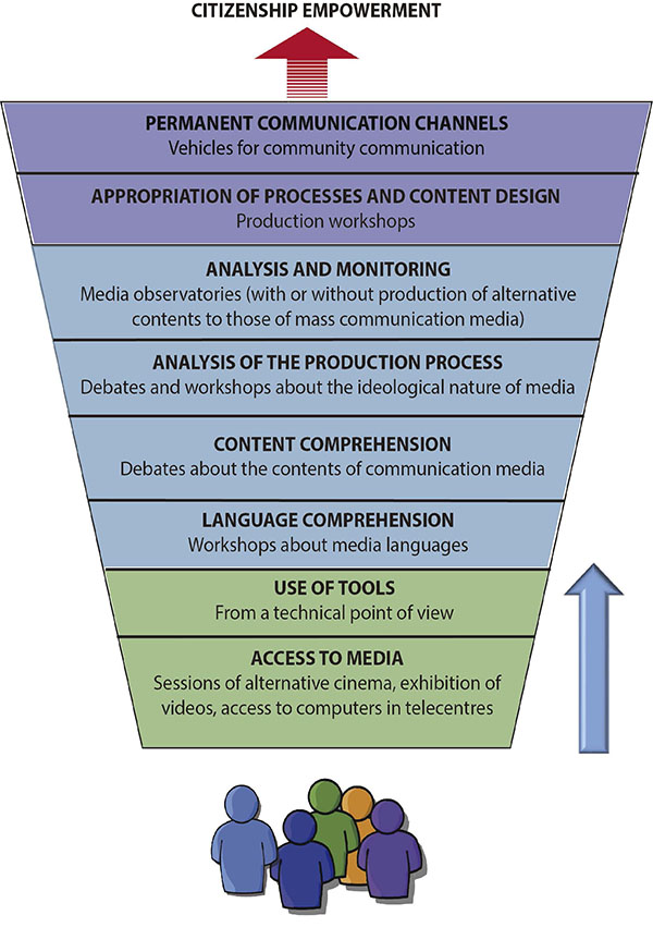 From the proposed model, we observe that the final goal of media education activities developed by the civil society could be the creation of permanent channels for community communication, with which the effective participation of citizens in social and communicational processes could be ensured.