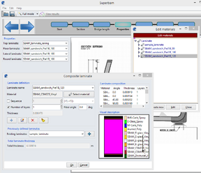 It is possible to assign different laminates to each different part of the bridge: Top, Floor, Lateral or Round laminates. The predefined materials can be modified, and new ones can also be created.