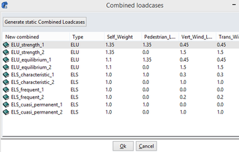 In addition to geometrical guidelines [1], codes also define loads, such as wind, live, and accidental loads, partial safety factors, and structural verifications requirements [2]. In the “Loads” section, the user can modify the different parameters which create the loads that are going to be automatically applied on the model. These loads can be static or dynamic. For static analysis, it is possible to define the full set of combined loadcases. For dynamic analysis, pedestrian loads are created. These loads have been implemented according to the theory in “Dynamic Behaviour of Footbridges Subjected to Pedestrian-Induced Vibrations” (Fjalar Hauksson, Lund University. ISSN 0281-6679) [3]. Additional verifications have been made in accordance with the technical guide “Footbridges, Assessment of vibrational behavior of footbridges under pedestrian loading”, SÉTRA, 2006 [4]