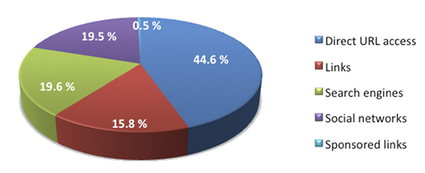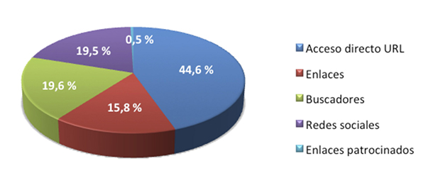 However, data on the origin of the access downplays the importance of the front pages as catalysts of consumption habits for digital readers. Currently, less than half of visits (44.6%) received by 28 newspapers analysed directly access the media website at its main URL (home).