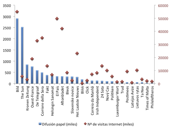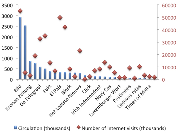 Figure 1. Circulation and Internet audience of main European newspapers.