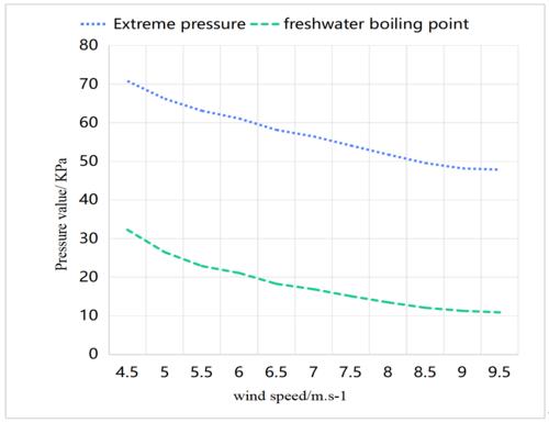 | Figure 4. Boiling point of fresh water at the corresponding wind speed and corresponding air pressure limit pressure |