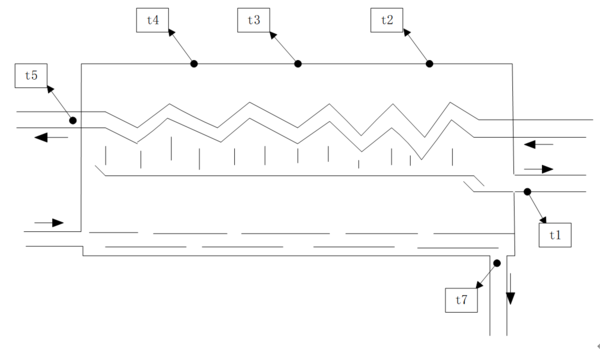 The project plans to set up three temperature measurement points at equal distances on the top surface of the evaporator, and to set up temperature measurement points at the inlet of cold seawater, the outlet of concentrated brine, and the outlet to accurately predict the water production performance of the system under different operating conditions. Based on this, the temperature data accuracy of the 32-channel rapid temperature recorder (JLS XMT) is ±0.1℃. A vacuum gauge measures the pressure inside the evaporator, with a measurement range from 0 to 100 kPa and an accuracy of ±1.6%. An electronic scale is installed below the water storage tank, with a measurement accuracy of ±0.5g, to record the water quantity in the system in real time [8]. The temperature of the thermocouple and the consumption of clean water are tested for 1 min and 5 min, respectively, before changing the test formula. If the water quantity in the system is less than 0.1 kg/5min, the end of the system’s operating cycle is determined, and a new round of water injection begins. The schematic diagram is shown in Figure 2.