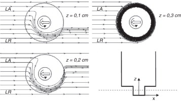 En la figura 7 se muestran las líneas de corriente del modelo en planos horizontales a distintas alturas (z) respecto a la superficie inferior de las placas por soldar.