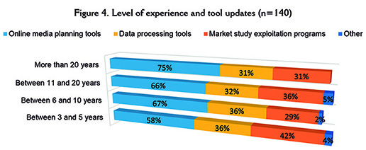 Mastery of media planning tools is the most relevant specific area at all levels of practice. The greater the experience, the greater the need to manage new software related to marketing intelligence technologies (Figure 4): “for them to know other types of technologies which is what we have today, all the Salesforce environments, Adobe..”. (Castellanos).