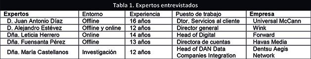 In particular, the experts also stressed the areas of analytics and programmatic advertising as specific knowledge that they must broaden as a result of the digital media : “Although I began in digital, I have changed; the entire subject of programmatic advertising and analytics reached me when I had some years of experience, when you believe you have already learned” (Herrero). "I always talk about performance and programmatic buying, which are quite technical areas, because nowadays there is a great tendency to look for this type of strategy and it seems that it has a technical part that you have to know. I have a lot to learn there”. (Perez)