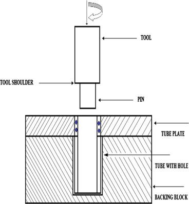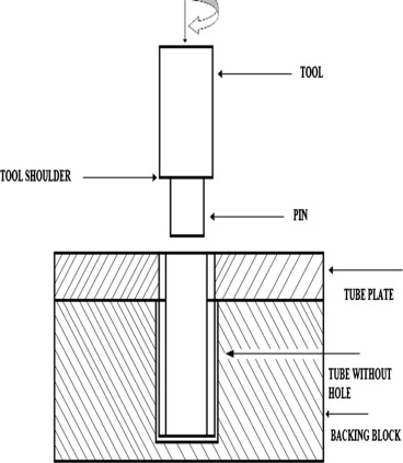 The external tool consists of a shoulder and pin and the external tool used in this experiment is tungsten carbide. The tube and tube plate to be welded are well cleaned with air gun and set to free from all contaminants such as grease and absorbed film. The FWTPET machine consists of a tool holder, spindle, table and a supporting structure. The preferred dimension of hole was drilled at the centre of tube plate, and the tube was fitted and assembled to clamp in the machine wise with the support of backing block and specific setting conditions have been provided for each work piece and suitable amount of value is given as the input parameters.