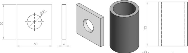 The backing block is a fixture made of cast iron to support the work piece which is clammed in the milling machine during the experiment. The small gap is provided for the clearance fit between the backing block and the assembled work piece tube and tube plate. This aspect has been ensured by means of proper selection of dimensions of the tube as well as the hole. This backing block is made up of cast iron of size about 50 mm ∗ 50 mm possessing a centre hole with depth of 26 mm and diameter of 19 mm. The backing block used in FWTPET process is shown in Fig. 6.