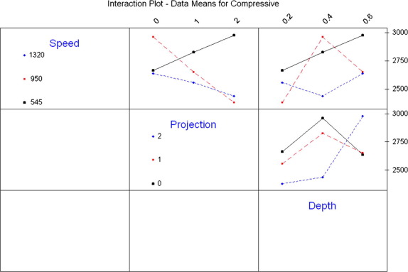 | Speed (rpm) | Projection (mm) | Depth (mm) | Compression strength (MPa) | |
