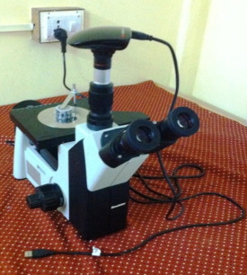 The micro structural characteristic of the friction welded joints was examined through the electronic optical microscope and the veracity of joints was analysed through the micrographs of the weld zone. After the welding operation, the work piece is sliced into smaller pieces for micro structural observation. The tube and tube plate joints are sliced into equal shape with the help of power hacksaw blade. The sliced pieces are then processed for cold setting done by the mixture of coal setting components such as coal setting liquid and coal setting powder. The more uneven scratches on the work pieces are removed by using dry belt machine. Then the fine scratches are removed using emery sheets with different sets of grade sheets. The chemical name called Nital etchant was applied on the work piece and it is made to dry in hot air for 10 s to get an enhanced micro structure of the work piece. The chemical composition of the NITAL etchant is 100 ml of Ethanol and 1–10 ml of HNO3[11]. This chemical is applied to the entire welded work piece which is obtainable to do micro structure with various magnifications. Fig. 12 shows the work piece which is fixed in the microscope to identify the microstructure of the welded work piece.