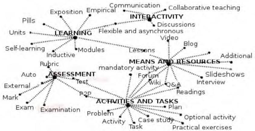 The data implies that platforms condition the pedagogical designs of MOOCs (figure 3), but this does not necessarily imply the existence of a pedagogical model underlying the MOOC proposal. I.e., the platform constrains and restricts online courses, albeit some platforms deploy a degree of flexibility, with fluid boundaries among the different features in INdiMOOC-EdI.
