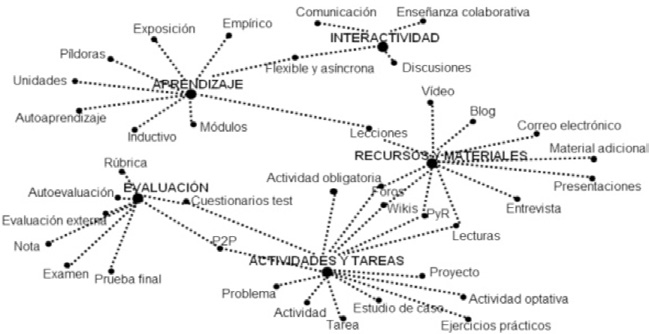 Con los datos cualitativos (aspectos formativos e interactivos) se realiza un análisis de contenido que ha derivado en el establecimiento de cinco grandes categorías: