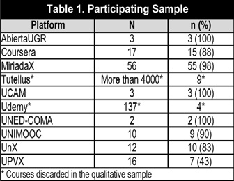Consequently, these two platforms were not included in the qualitative sample. Thus, we can state that the remaining 104 courses represent 81.25% of the population.