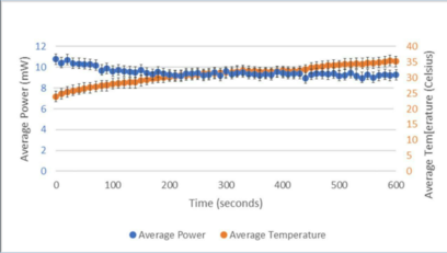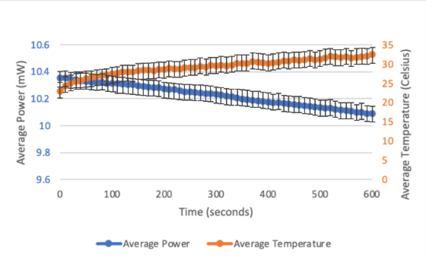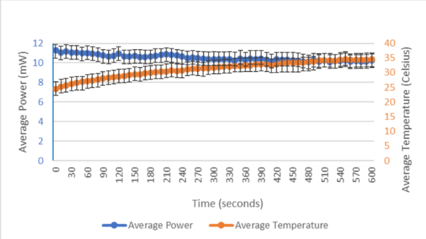 Figure 5: Power vs. Temperature over Time graph for the control group - 0 Degrees (n=3)