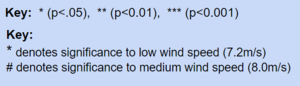 Figure 8: Power Output For Varying Tilting Angles at Low, Medium, and High Winds Speeds (n=36)