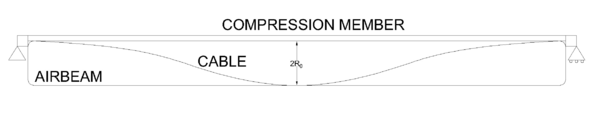The cables tend to ascend when tensioned, compressing the airbeam and thus creating a force n normal to it. From cable theory, it is known that the tension in the cables is related to the contact force f with the membrane and the curvature of the cable,