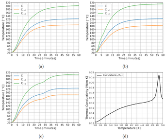 On the other hand, the work of [10] designed an enclosure, well isolated from the outside, to replicate a one-dimensional thermal conductivity process, applying a known temperature at once end of the test specimen and cooling it down at the opposite end with cooling oil with a very controlled temperature. The goal is to measure the temperature distribution along the test sample to determine a thermal conductivity value using a set of energy balance equations. The drawback of this test is that all the temperatures must stabilize to calculate the thermal conductivity.