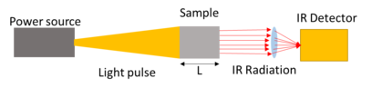 The thermal conductivity is measured by applying a known amount of heat at a surface, measuring its temperature at that surface and then, measuring the temperature at an opposite surface as function of time. This procedure is known as the Flash method, and the typical test procedure assembly is presented in Figure 3.