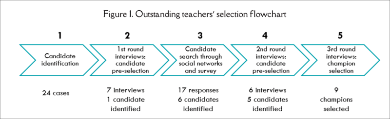 A partir de una muestra inicial de 24 candidatos, mediante un proceso de cinco fases (tal como se ilustra en la Figura 1), se seleccionaron nueve docentes.