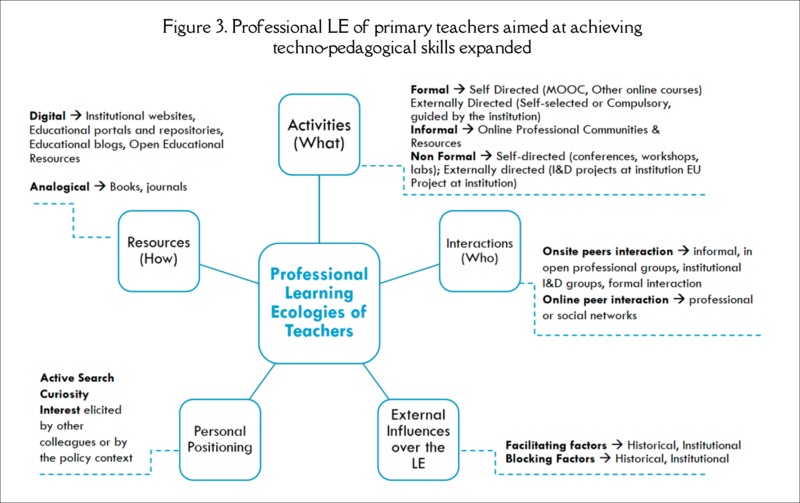 The above considerations are relevant in recognizing that, while most learning ecology studies attempt to analyse ongoing experiences and practices, few support strategies for professional development (Sangrà, Raffaghelli, & Guitert, 2019). Therefore, and considering the ongoing debate on the need to improve the effectiveness in teachers’ professional development, it seemed particularly appropriate to research lifelong LE in primary teachers in an endeavour to support future research, strategies, interventions and recommendations for professional development based on cultivating professional LE.