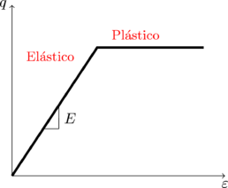 Por otro lado, la formulación del comportamiento elastoplástico perfecto en el modelo está dado por la interacción entre la tasa de deformación elástica y la tasa de deformación plástica (ec. (3)). Dicha interacción parte de la forma básica de la ley de Hooke (ec. (4)), donde representa la matriz de rigidez del material