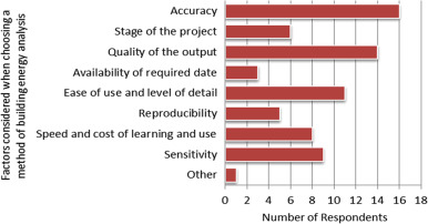 Fig. 15. Respondents’ feedback when asked about the factors that they consider when selecting a method/tool for building performance analysis. |