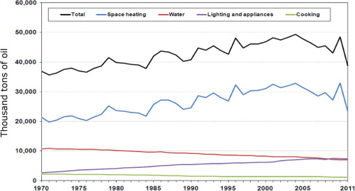 Fig. 7. Domestic final energy consumption by end use in the UK from 1970 to 2011.Source: DECC, 2013. |