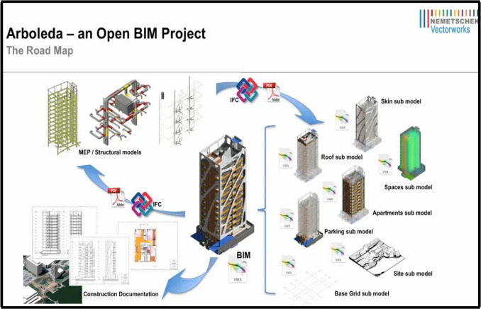 The Arboleda Open BIM project is a multi-family, multi-storey urban in-fill residential development in Santa Domingo, Dominican Republic. This project was implemented in a small BIM approach that utilized Vector Works Architects software and was completed in 2011. However, the use of Vector Works Architects was limited to architectural purposes. The Nemetschek Vector Works, together with its global partners, conducted an in-depth investigation on the project after its completion and recorded what could have occurred if the project had been delivered utilizing a collaborative open BIM approach based on the Industry Foundation Class (IFC) file format. IFCs are object-based data models adopted to describe building and construction industry specifications.