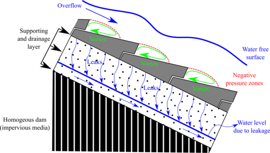 | Figure 8. Scheme of operation of WSB over homogeneous dam |