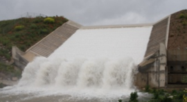 | Figure 1. Left: operation scheme of WSB. Right: example of WSB spillway (Barriga dam, Spain) | |