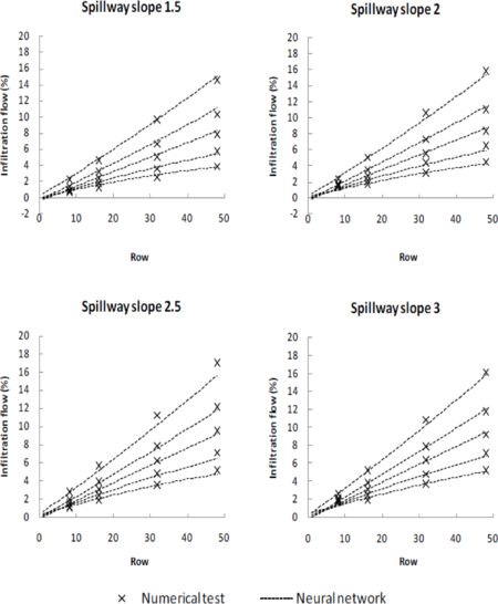 | Figure 15. Comparison of infiltration flows obtained from numerical tests and neural network |