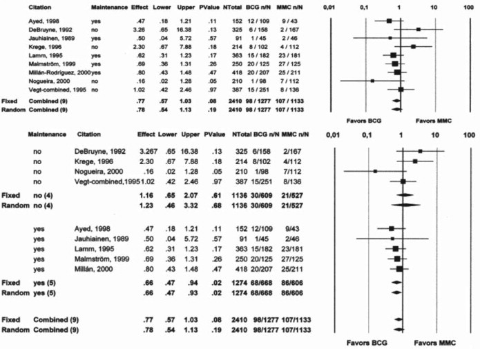 Figura 1. Efeito do esquema de manutenção de BCG versus Mitomicina C (Böhle et al30 ). |