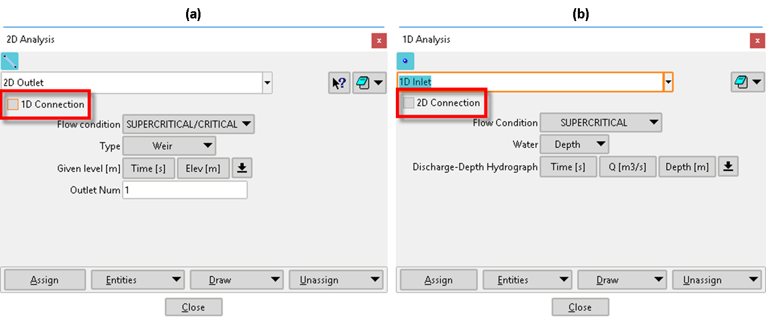 Otros cambios relacionados con el flujo de trabajo, pero que a la vez se trata de nuevas funcionalidades y herramientas, es la consideración de flujo a presión en tramos cubiertos y la eliminación de la herramienta ‘Brecha’ del menú ‘Datos’. De este modo, para ‘Cubiertas’, el/la usuario/a deberá proceder como en versiones anteriores, imponiendo la cubierta donde considere, pero ahora deberá activar su cálculo a través de su correspondiente pestaña en ‘Datos del Problema’ (Fig. 3b). Aquí tendrá, además, la posibilidad de calcular cubiertas mediante la metodología tradicional de la ranura de Preissmann 2D [11,12] o el nuevo método basado en la teoría de cubiertas elásticas [13]. En lo que respecta a la herramienta ‘Brecha’ (Fig. 6a), así como pasa con ‘Alcantarillas’ (Fig. 6b), el/la usuario/a no tiene que activarla, tan solo tiene que definirla como se ha hecho hasta ahora en versiones anteriores de Iber y decidir si desea o no calcularla.