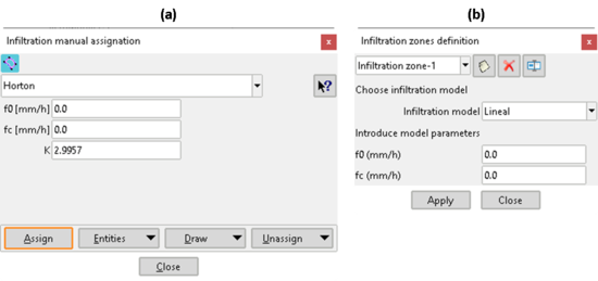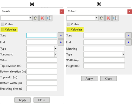 Fig. 6. Integración de la opción de cálculo en: (a) ‘Brechas’; (b) ‘Alcantarillas’.