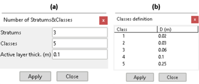 La definición del número de estratos y clases del sedimento, así como el espesor de la capa activa, es primordial para la implementación de las propiedades del sedimento, ya que de estos valores depende la generación del resto de ventanas.