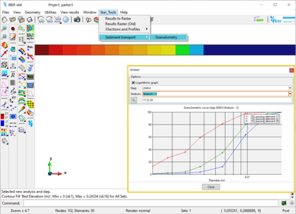 Desde el principio Iber incorporó un módulo de transporte de sedimentos por arrastre de fondo, y un módulo de transporte en suspensión, pero considerando la hipótesis, o simplificación, de material uniforme. En esta versión de Iber se ha implementado y validado un nuevo Módulo de Transporte de Sedimentos con granulemtría no uniforme, o granulometrías extendidas. Ello proporciona no solo mayor precisión en los resultados, sino también permite la simulación numérica de procesos que antes no se podían contemplar, como son: el acorazamiento del lecho, erosiones diferenciales por efecto de las distintas granulometrías, o la clasificación del material del fondo por zonas según la capacidad de arrastre.