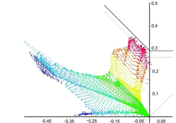 Figure 6 shows the FLD distance value of PAM-Stamp 2G, which indicates the distance between point A and point B, where a negative distance corresponds to a point A below the forming limit curve (c.f. figure 5). The FLDCRT value is calculated from this value.