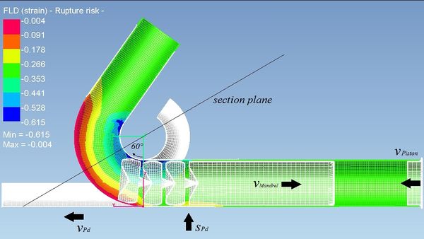 With the aid of the FE simulation program PAM-Stamp 2G of the ESI-Group, Neu-Isenburg Germany, a simulation model was modeled according to the real process of the company Westfalia Metallschlauch GmbH, Hilchenbach Germany.
