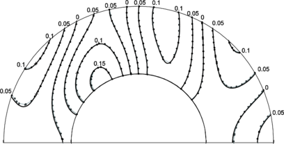 Eq. (26) imposes a strong coupling between the free surface boundary condition and the Laplace equation. This is carried out by modifying the system matrix . Once the system is solved, at the free surface is obtained using Eq. (24).