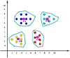 Tenemos un conjunto de datos (Tabla 1), cada dato se representa como un punto en el plano cartesiano con coordenadas , y lo que se quiere realizar con dicho conjunto de datos, es encontrar grupos de manera automatizada.