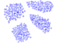 En la Figura 5 es fácil localizar visualmente cuatro grupos. Sin embargo, aún en dos dimensiones no siempre está claro cuántos cluster hay y cómo se agrupan los datos. Por ejemplo, del siguiente conjunto de datos, se requiere encontrar los grupos asociados a ellos.