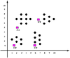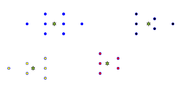 Un ejemplo sencillo de aplicación del algoritmo es el siguiente. Se toma un conjunto de datos en , en donde a sus coordenadas se les conoce como atributos de los datos (ver Figura 1). Para encontrar los centroides, seguimos los pasos siguientes[1]:
