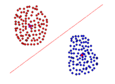 Estos conjuntos se consideran linealmente separables en el plano, dada la existencia de una recta tal que cada grupo incluido en el semiplano diferente, como se observa en la Figura13 a). En el conjunto se dice que dos conjuntos son linealmente separables si existe un hiperplano tal que cada grupo cae en uno de los subconjuntos determinados dicho hiperplano.