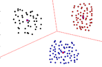 Una colección de estos grupos es linealmente separable, si cada par de ellos es linealmente separable, ver Figura13 b). Esta idea se puede observar más fácilmente con diagramas de Voronoi.