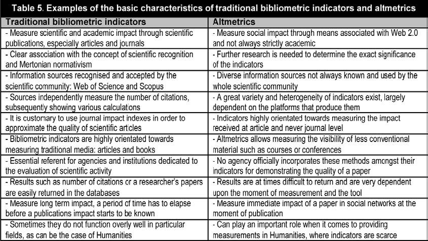 Altmetrics is a very new term, and can be defined as the creation and study of new indicators for the analysis of academic activity based on Web 2.0 (Priem & al., 2010). The underlying premise is that, for example, mentions in blogs, number of re-tweets or saves of articles in reference management systems, may be a valid measure of the use of scientific publications. However, measuring the visibility of science on the Internet is not a new phenomenon. The origin of altmetrics arose in the nineties with webometrics, the quantitative study of the characteristics of the web (Thelwall & al., 2005). This was derived from the application of bibliometric methods to online sites, and encompasses various disciplines including communication. Despite the web playing an increasingly important role in social and economic relations, this discipline has not been able to overcome certain limitations inherent in the methodologies, methods and information sources used. However, it has contributed a complementary perspective to the traditional analysis of citations by means of the study of links, mailing list communications or analysis of the structure of the academic web. Shortly afterwards, the consolidation of scientific communication by journals and electronic media such as repositories opened the door to new indicators.