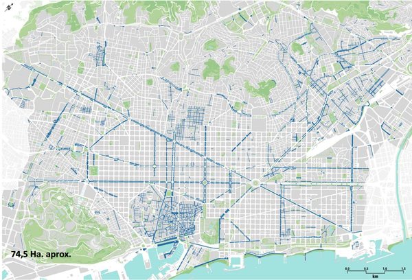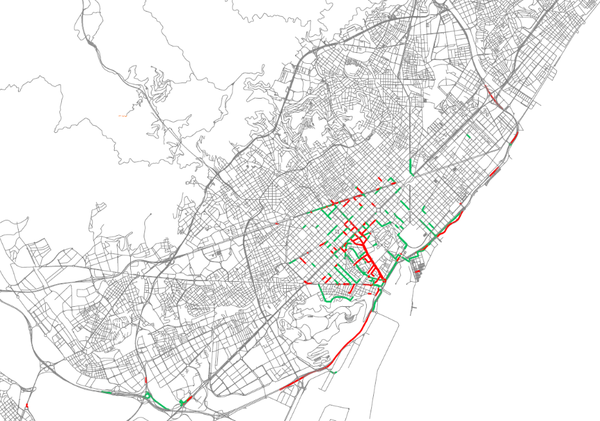 Entre 2010 i 2014, tot i la urbanització d’una vintena de nous carrers, la superfície de voreres va augmentar a Barcelona un 10,6%, de l’ordre de 3 vegades més que la superfície de calçades (3,7%). El 2015 hi havia 442 km de zones 30 a la ciutat, un 5,2% més que el 2012. La primera "zona 30" de la ciutat es va crear al juny de 2006 al districte de Sant Andreu i es va comprovar que passat un any de la seva implementació, l'accidentalitat dins d'aquesta àrea havia disminuït un 27%. També incrementa els quilòmetres de carril bici, de 94km a 120km entre 2011 i 2015.