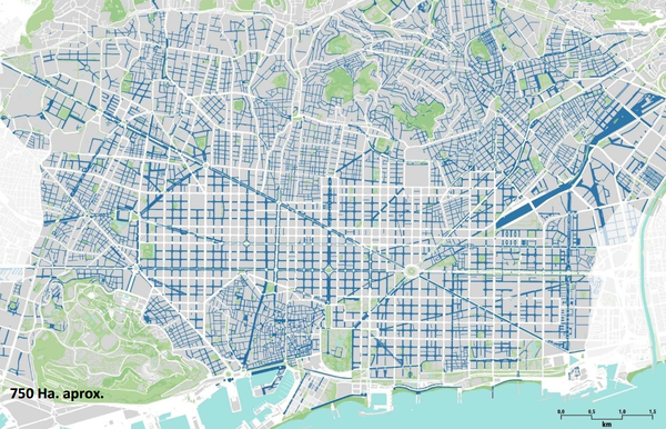 La reducció de l’espai destinat als cotxes augmenta el cost i el temps dels viatges motoritzats i provoca, alhora que la regulació de l’aparcament en superfície, la reducció del nombre de desplaçaments. Així, l’estudi també avança una mesura del que podria ser el valor de l’espai públic aconseguit en mesures de reducció de la capacitat viària. S’ha comprovat que el valor pot variar molt, entre els 2.800 €/m2 i més de 30.000 €/m2, en funció de la zona.