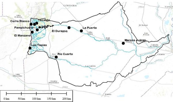 | El Durazno | Cerro Blanco | El Manzano | La Puerta | Lutti | Pampi-chuela | Yacanto | Las Tapias | Marcos Juárez | Río Cuarto | |