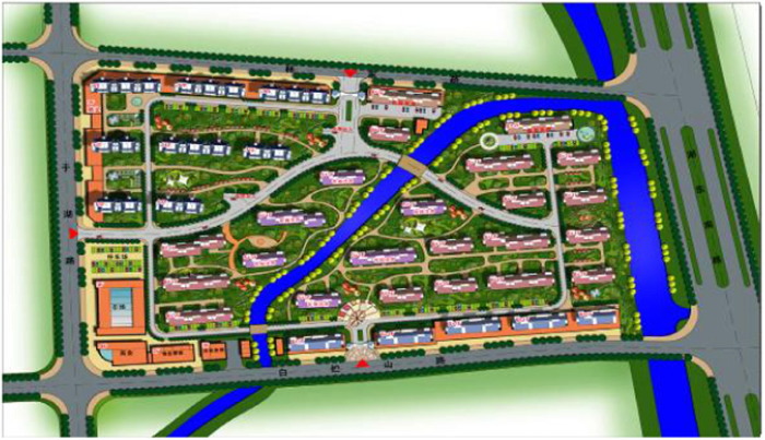 Under the situation of high convenient traffic, we should develop the central advantage of this project. Meanwhile, it is surrounded by residential districts in south, north, and west side. Therefore, we arrange commercial buildings, commercial housing buildings, and community service buildings along the three urban roads. This will enclose the living space in the middle of the planning area. In addition, we will take full use of the existed river systems to develop waterfront landscape, and arrange some villas around it to enhance the grade of this residential district (Figure 3 and Figure 4).